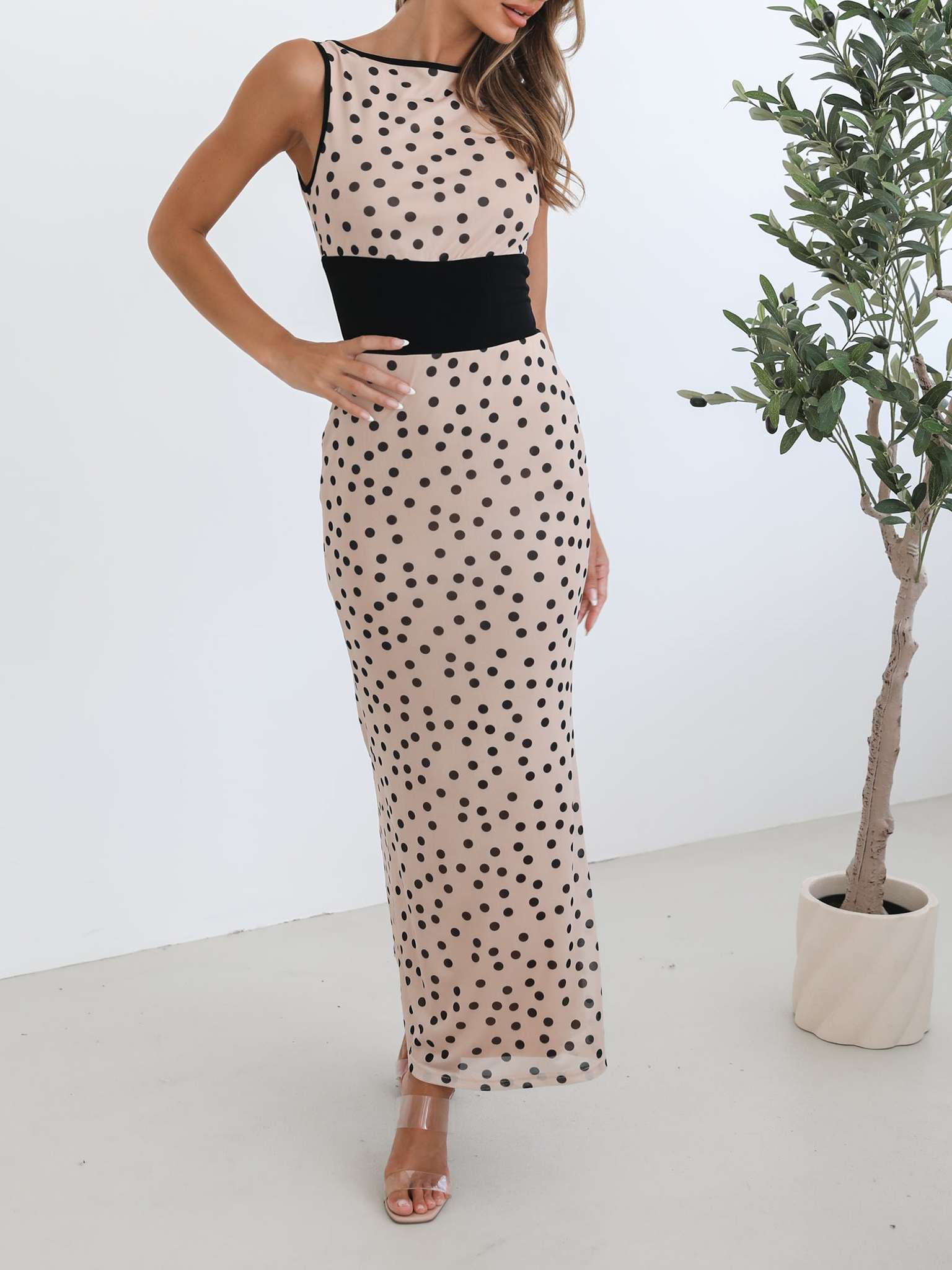 Beige Spot Casual Style Dress
