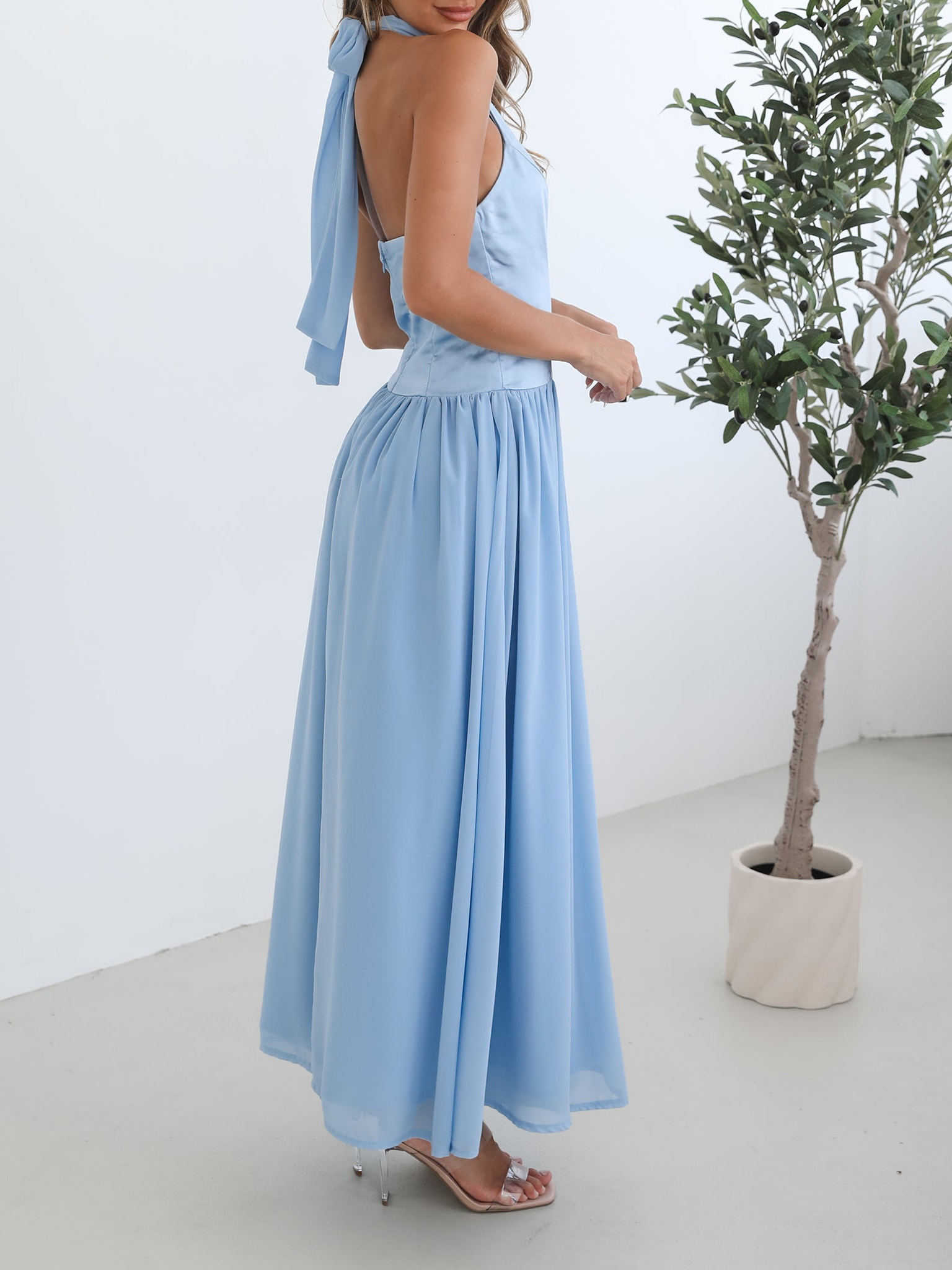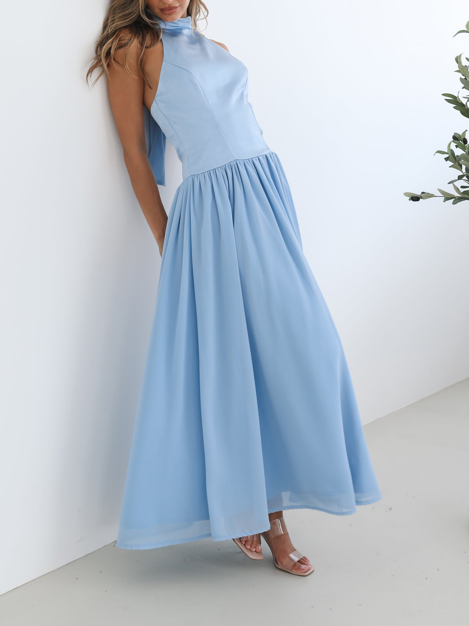 Blue Casual Style Halter Neckline Dress