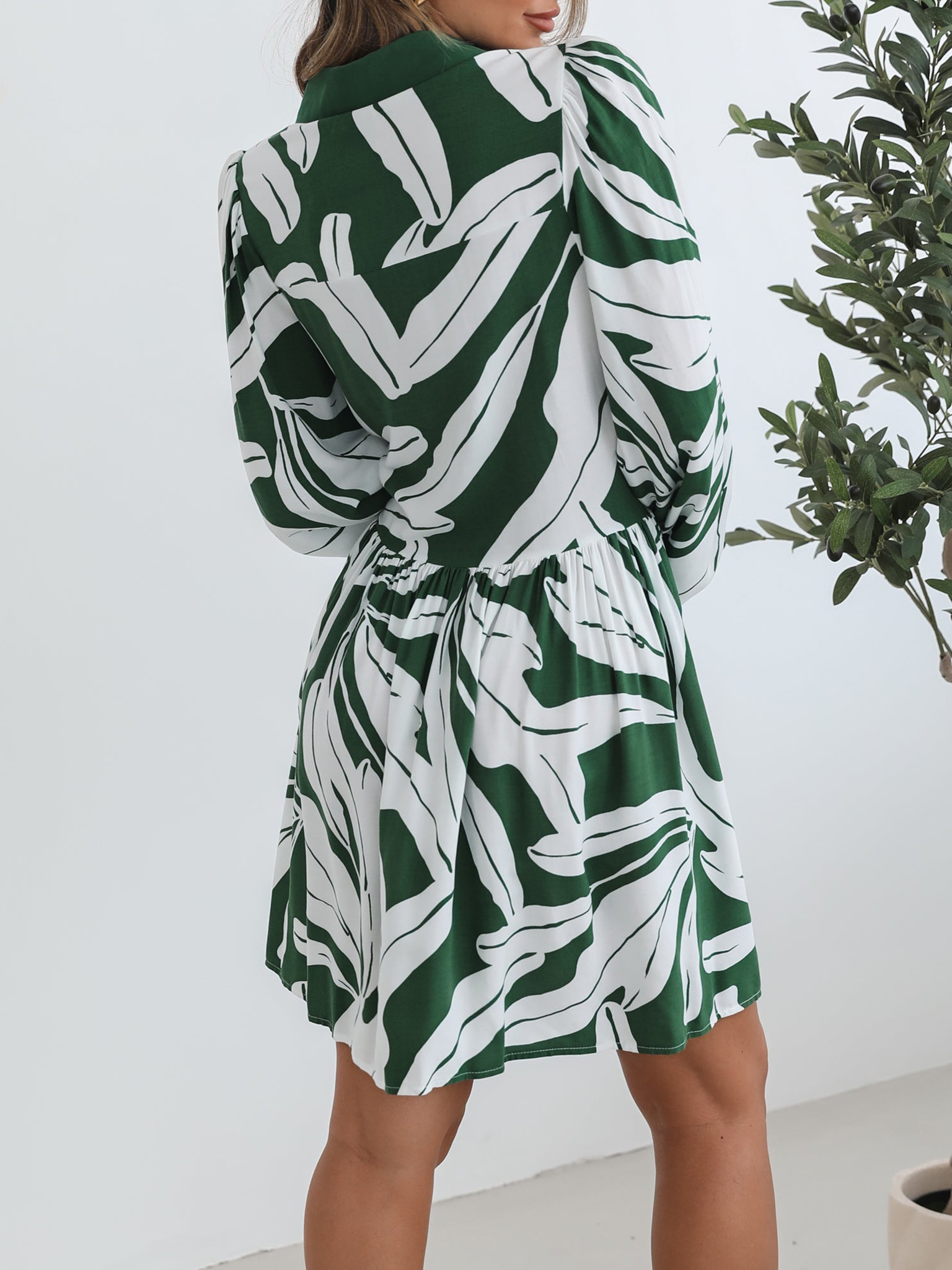 Long Sleeve Green Print Dress