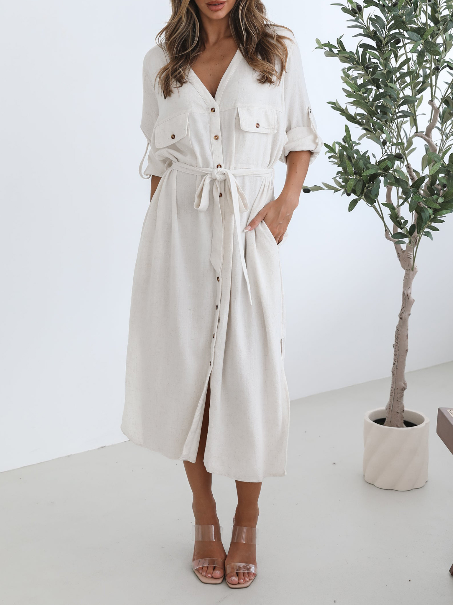 Oat Casual Style V Neckline Dress