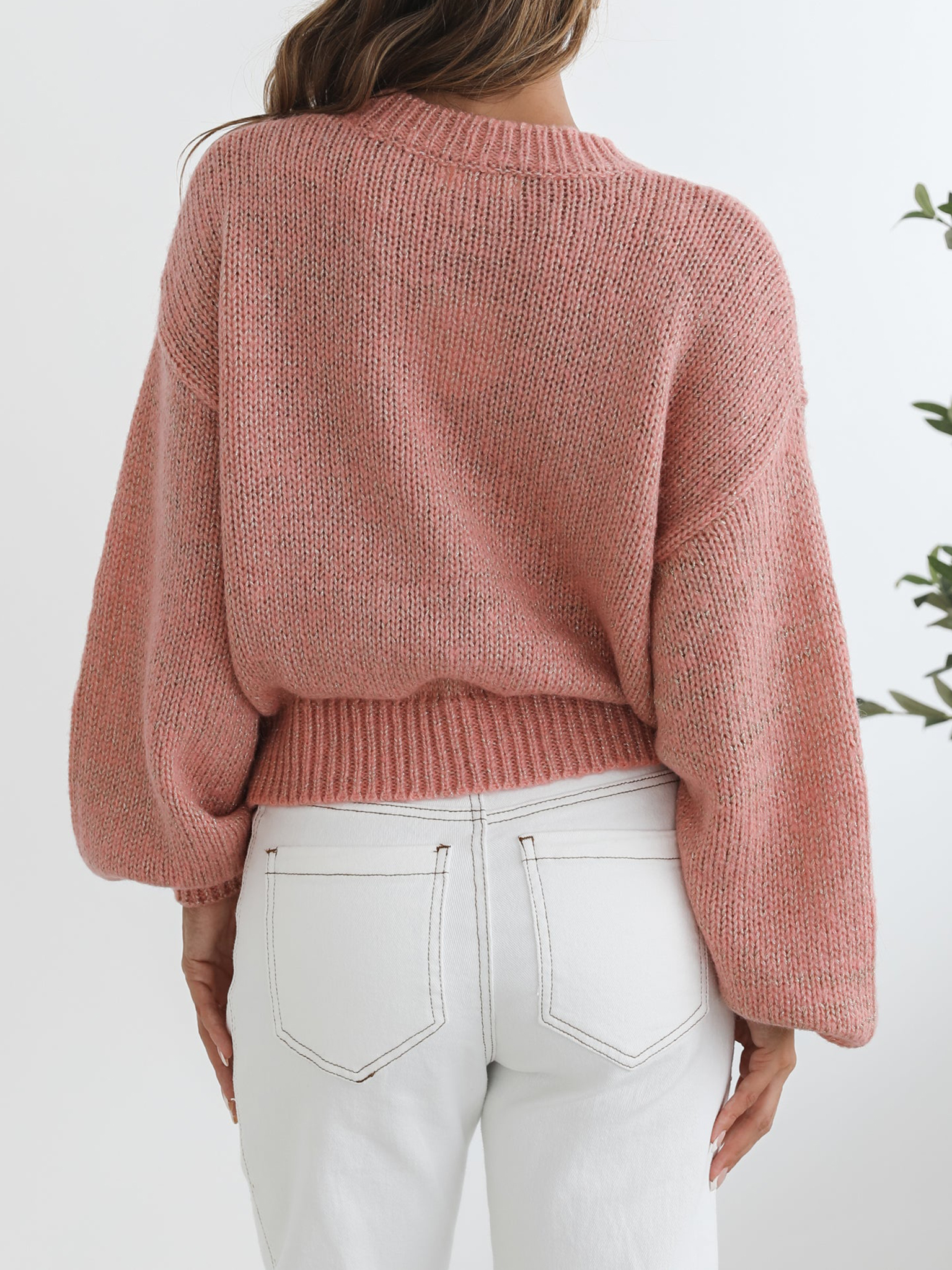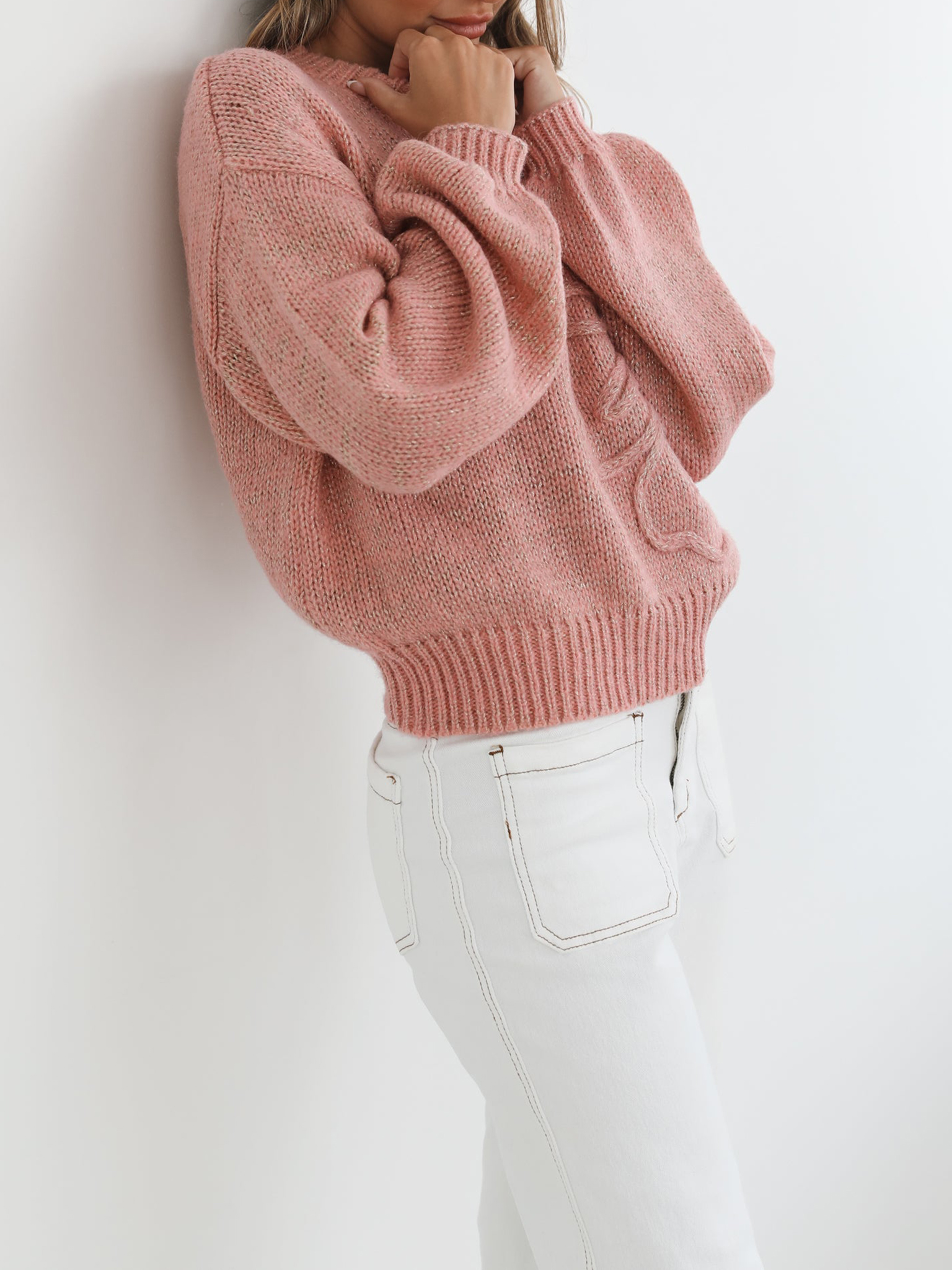 Pink Casual Style Crew Neck Knit