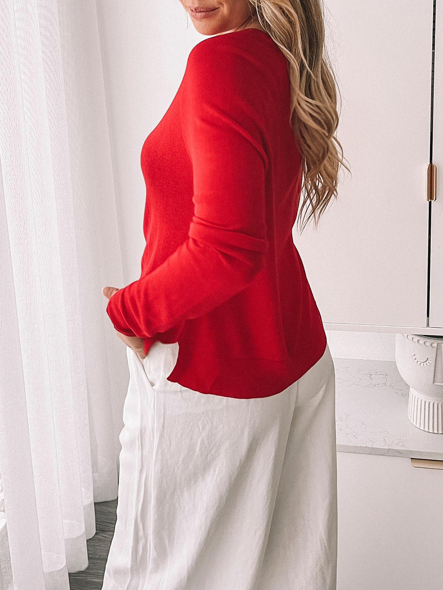 Red Crew Neck Knit Top