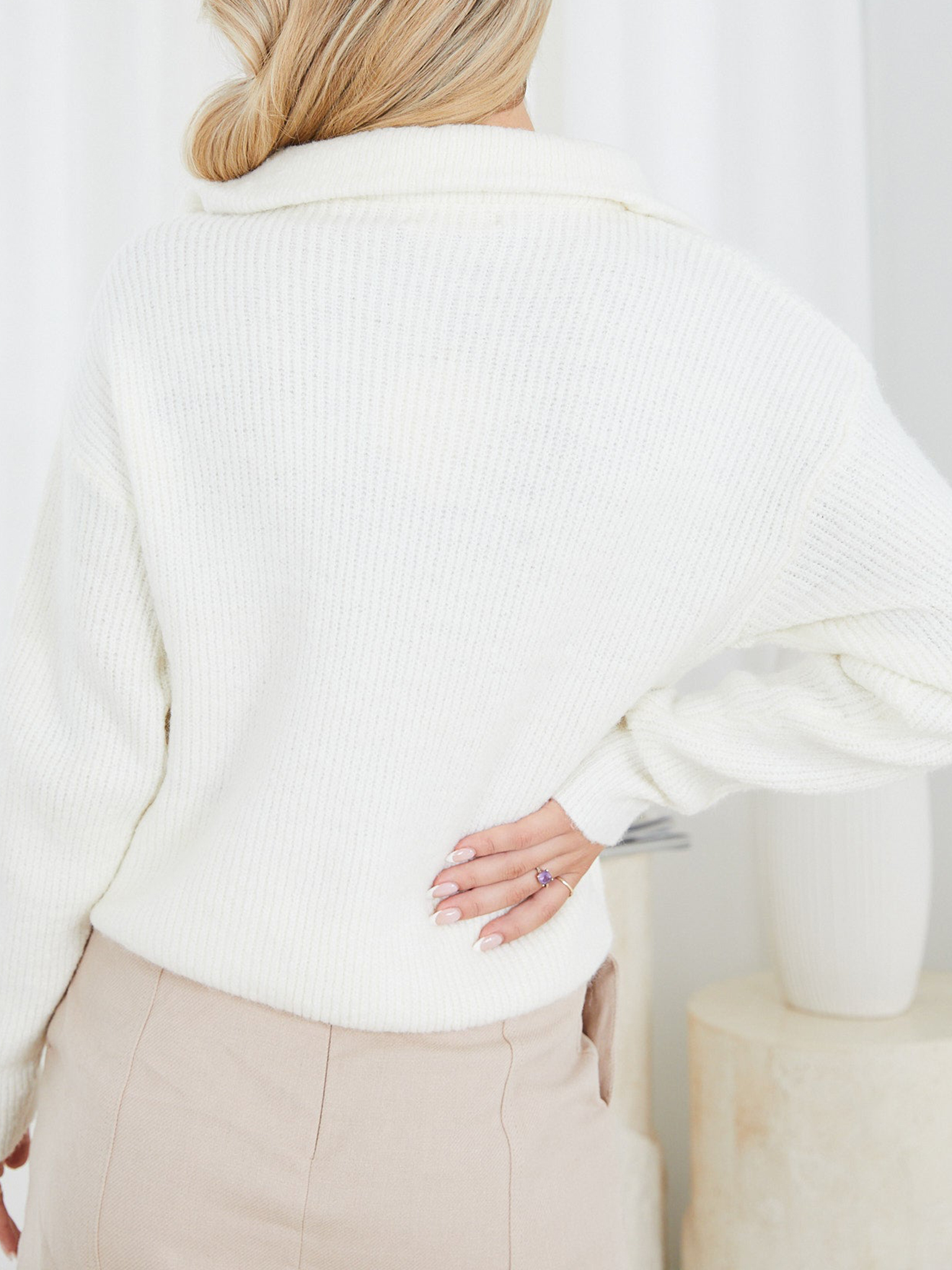 White Casual Style Long Sleeves Knit